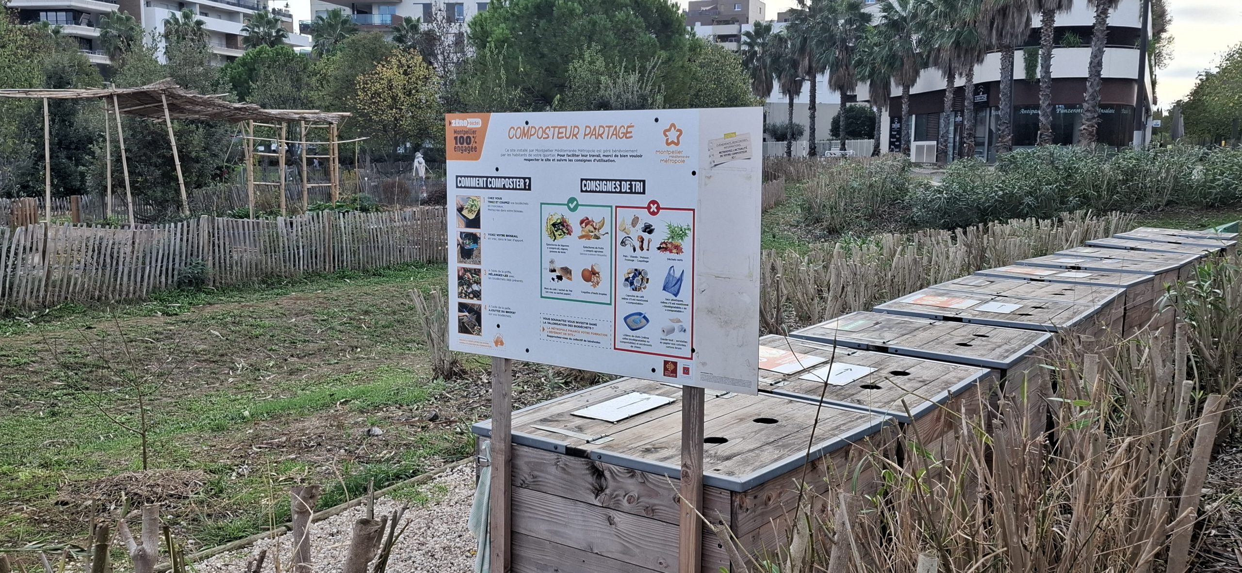 Au cœur du quartier Port Marianne, à côté du bassin Jacques Cœur et non loin du bosquet fruitier Wangari Maathai, se déploie un projet de compostage collectif géré par les habitants du quartier, en partenariat avec la Métropole de Montpellier. Ce dispositif a pour objectif de valoriser les biodéchets tout en renforçant le lien social